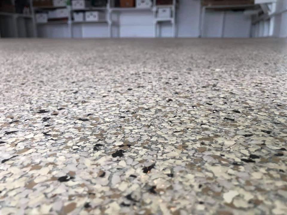 Moto Shop Garage Floor Epoxy Flakes Zone Garage
